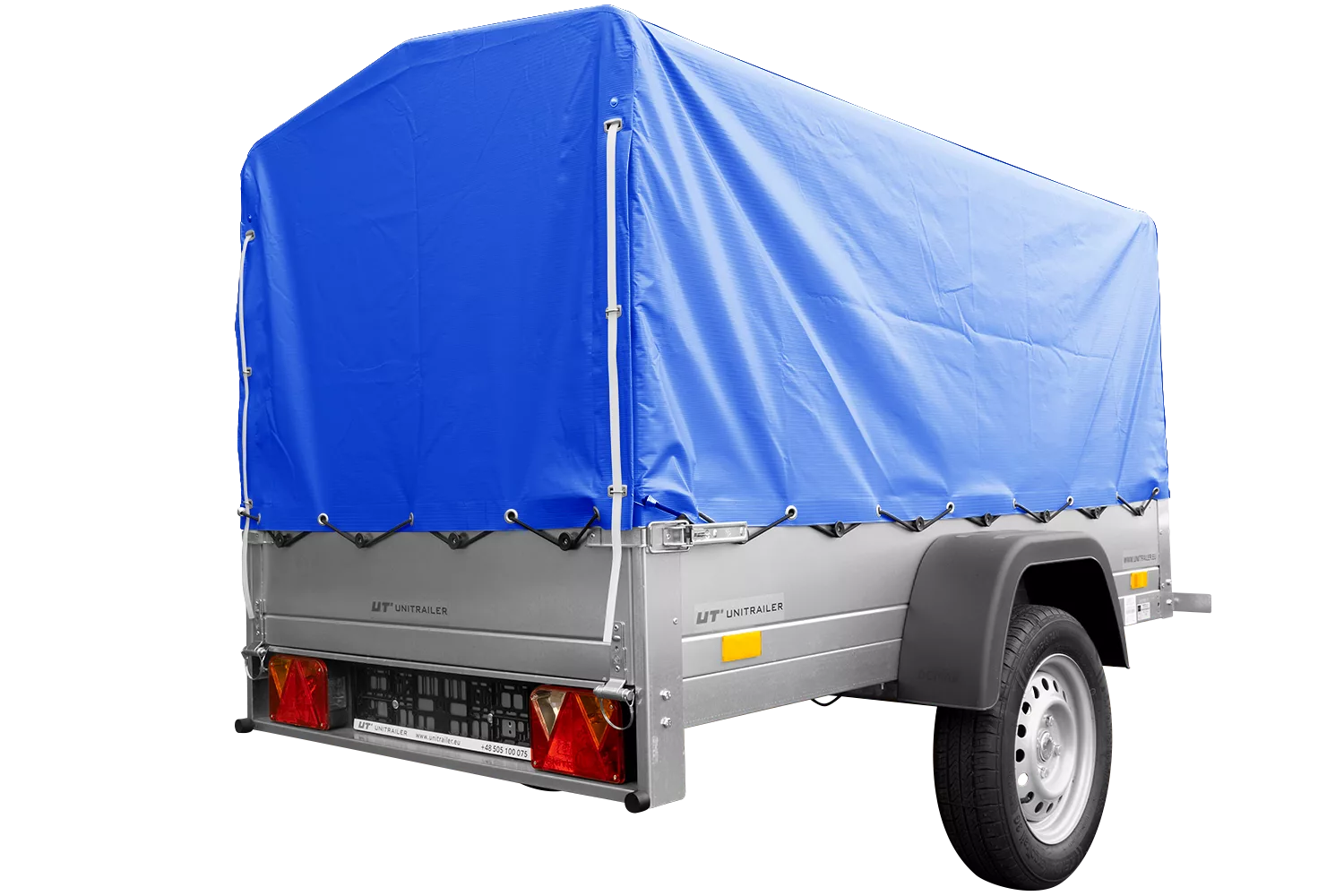 Anhänger mit Plane UNITRAILER Garden Trailer 201 KIPP mit Stützrad, blauer Hochplane und Hochspriegel