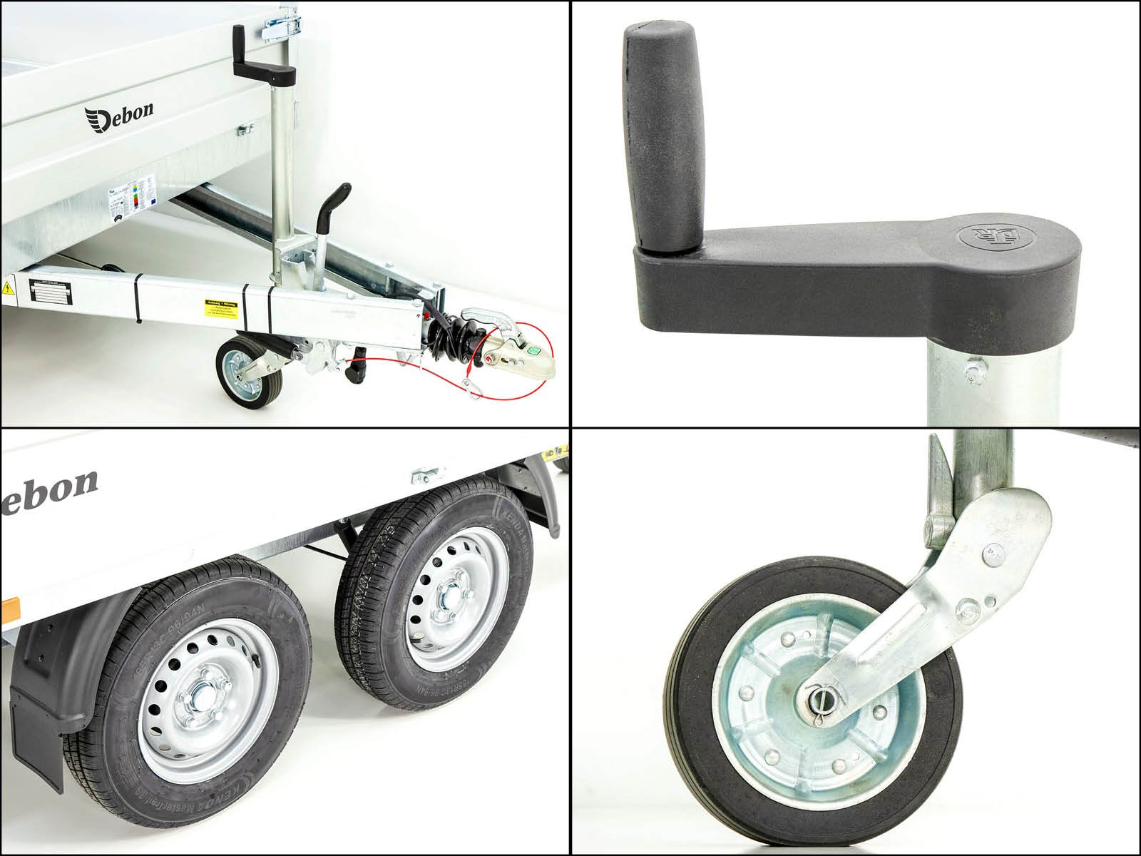 – Achse und Zugrohr komplett feuerverzinkt | Gummifederachse | V-Deichsel mit Zugkugelkupplung | Automatik-Schwerlaststützrad